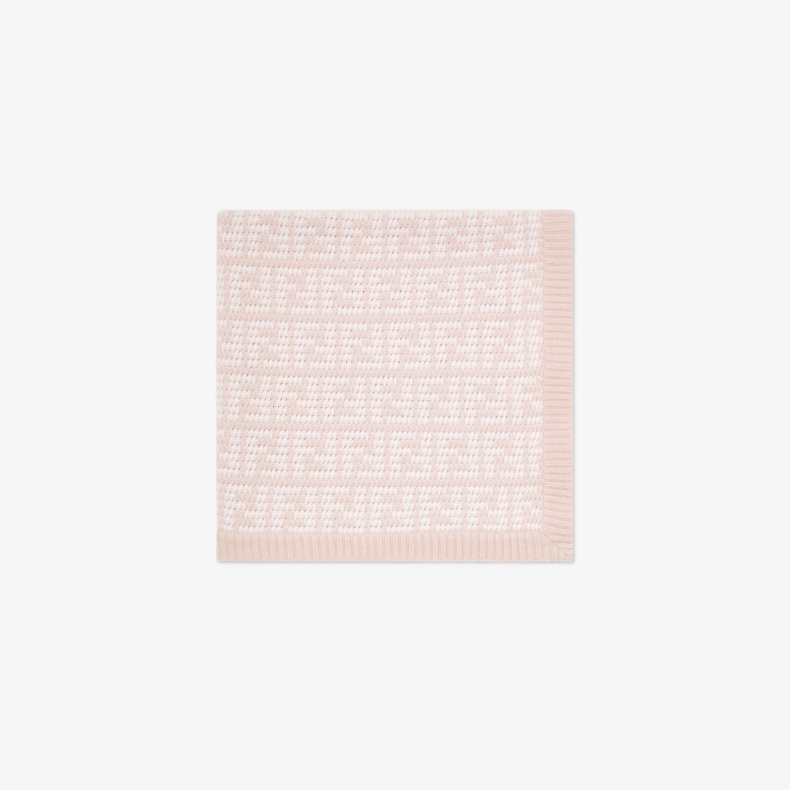 بطانية للرضّع من الكشمير مع شعار FF على كامل القطعة باللونين الأبيض والوردي الفاتح. القياسات: 80 × 80 سم.