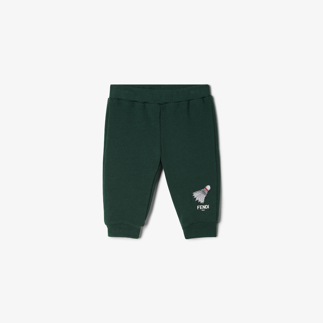 سروال للمواليد (من 0 إلى 24 شهراً) من الصوف الناعم باللون الأخضر مع طبعة وعلامة Fendi متعددة الألوان مطرزة على الطرف.