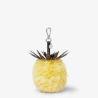 قلادة للحقيبة مصنوعة من فراء الأرنب وفراء الثعلب باللون الأصفر وكانفاس مع طباعة FF باللون البني. تتميز القلادة الصغيرة بتصميمها الفريد على شكل فاكهة الأناناس. زينة معدنية بلمسة نهائية من البلاديوم (palladium) ومشبك مزيّن بالعلامة.