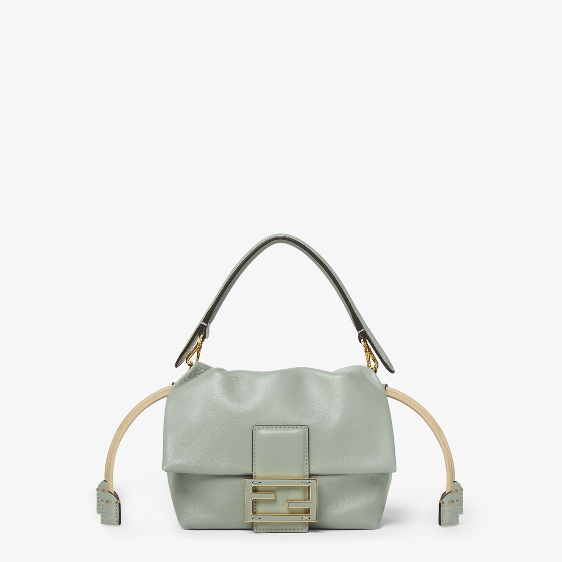 مصنوعة من جلد النابا (nappa) الناعم باللون الأخضر الماتشا ومزيّنة بمشبك FF كبير من المعدن مع زيادة من الجلد بدرجات مختلفة من اللون نفسه.