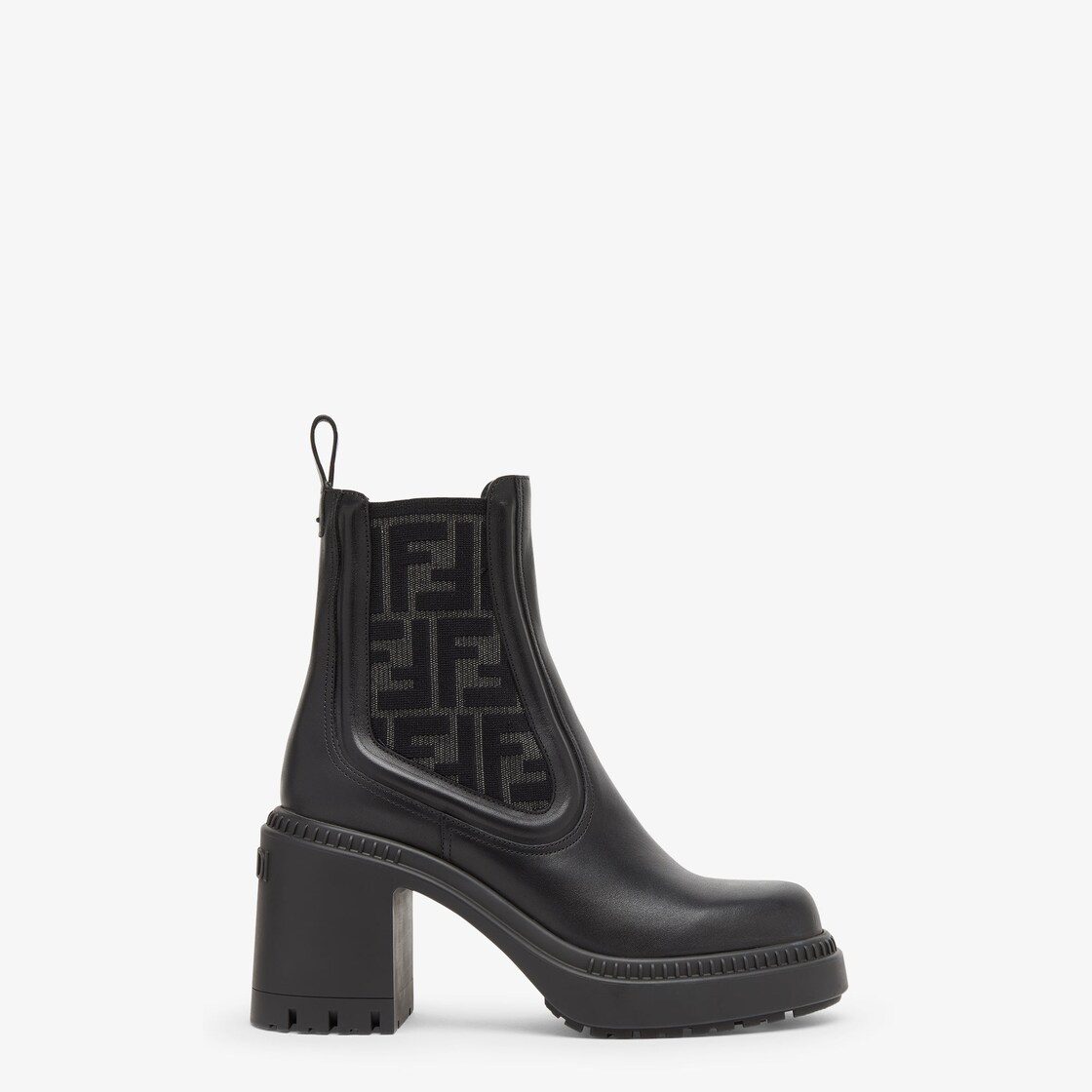 بوتس biker Domino بمقدمة دائرية وتقليم من المطاط على الجانبين. نعل خارجي عريض وكعب مطاطي. مصنوع من الجلد باللون الأسود، وهو جزء من المجموعة المنتقاة بعناية مع المصمّم ستيفانو بيلاتي. مزيّن بقماش مطاط مع طباعة FF باللونين الأسود والرمادي.