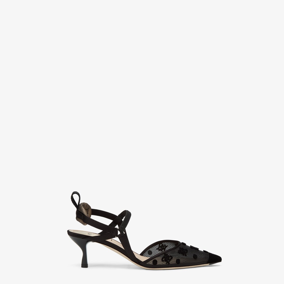Black mesh and FF Karligraphy medium-heel slingbacks