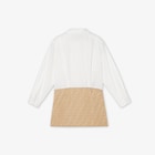 Junior dress with white cotton poplin long-sleeved shirt and mini-skirt in beige jacquard fabric with tone-on-tone all-over FF logo.