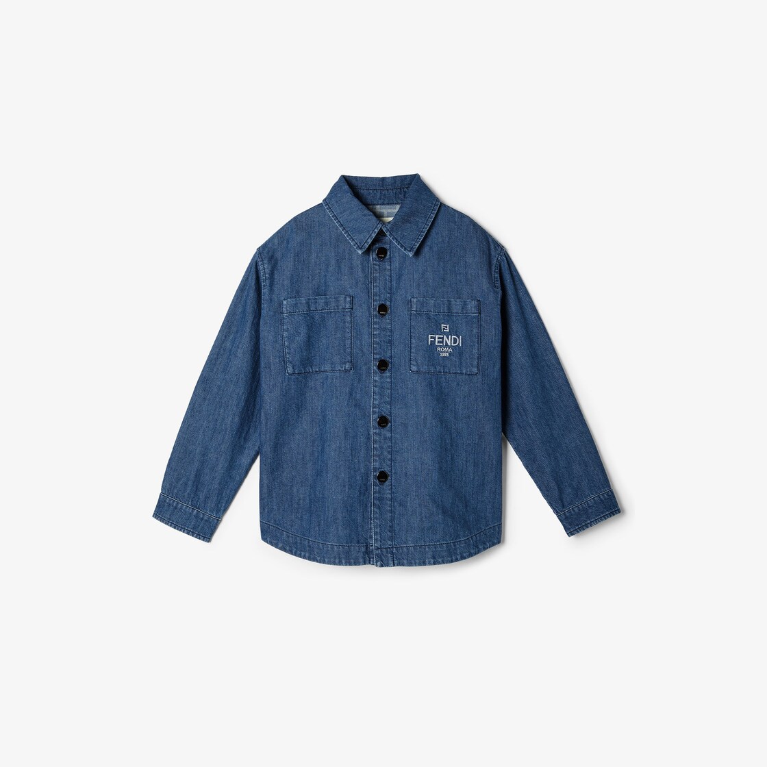 Lightweight blue denim long-sleeved junior shirt with small embroidery on the front and tone-on-tone FF logo detail on the turn-up cuffs.