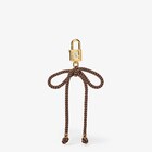 Charm with padlock-shaped clip and FF detail. Made of gold-finish metal. Long strap with bow motif in brown Chevron chenille. Embellished with two small geometric beads with FF logo. Perfect for customising the look of all the collection bags.