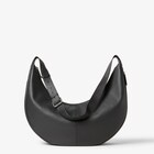 Large, crescent-shaped Fendi Melon Messenger bag. Made of black full-grain calfskin with a practical side zip pocket and decorated with a metal FF appliqué on the corners.