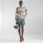 Made of calfskin printed with a black and white abstract motif inspired by butterflies. An applied maxi butterfly inlaid with multicolour leather, suede and satin adorns the front panel, as though it had delicately alighted on the bag.