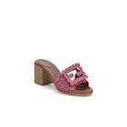 Wide-band slides. Made of brown nappa leather embellished with openwork embroidery and scalloped edges, finished with contrasting pink yarn. Tone on tone Baguette FF motif with scalloped edges and pink yarn embroidery. Wide heel covered in tan leather.