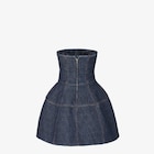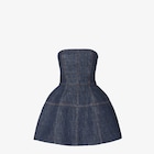 Short bustier dress with balloon skirt. Back zip fastening. Made of dark blue denim with all-over quilted FF motif. Contrasting tobacco-coloured stitching.