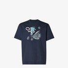 Regular-fit, short-sleeved crew-neck T-shirt. Made of 100% cotton in dark blue. Customised with a graphic print and yarn topstitching details on the front. Rib knit crew neck.