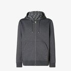 Sweatshirt with drawstring hood. Pouch pocket at the front. Stretch rib-knit cuffs and edge. Front zip fastening. Made of a dark grey pure cotton with black and light grey FF lining. Decorated with tone-on-tone FF logo embroidery on the left pocket.