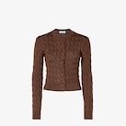 Long-sleeved cardigan. Slim-fit and matching front button fastening. Made of shiny brown viscose yarn, crafted with an all-over cable-knit motif. Finished with ribbed edges.