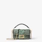 Iconic mini Baguette® bag made of exquisite green agate Teju lizard skin, characterised by natural nuances. Decorated with an FF clasp.