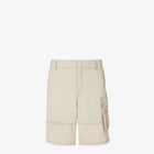 Relaxed cargo Bermudas. Belt loops at the waist and welt pockets on the back. Concealed zip fastening. Made of beige cotton gabardine. Featuring a left side cargo pocket with zip and press studs. Contrasting trompe-l'œil-effect stitching and matching FF logo embroidered on the left pocket.