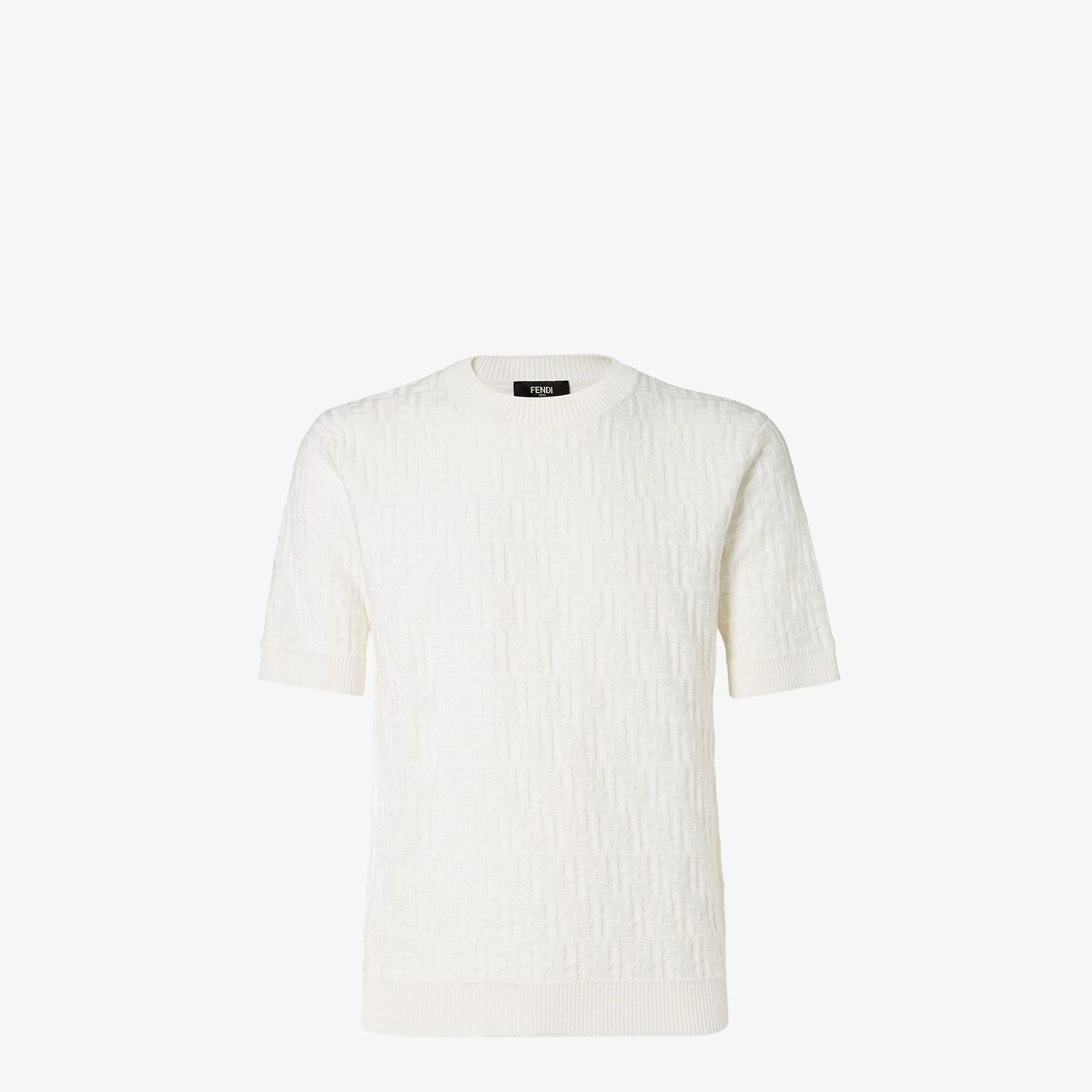Crew-neck pullover with short sleeves. Made of white cotton yarn with all-over FF logo in the same colour. Finished with ribbed edges.