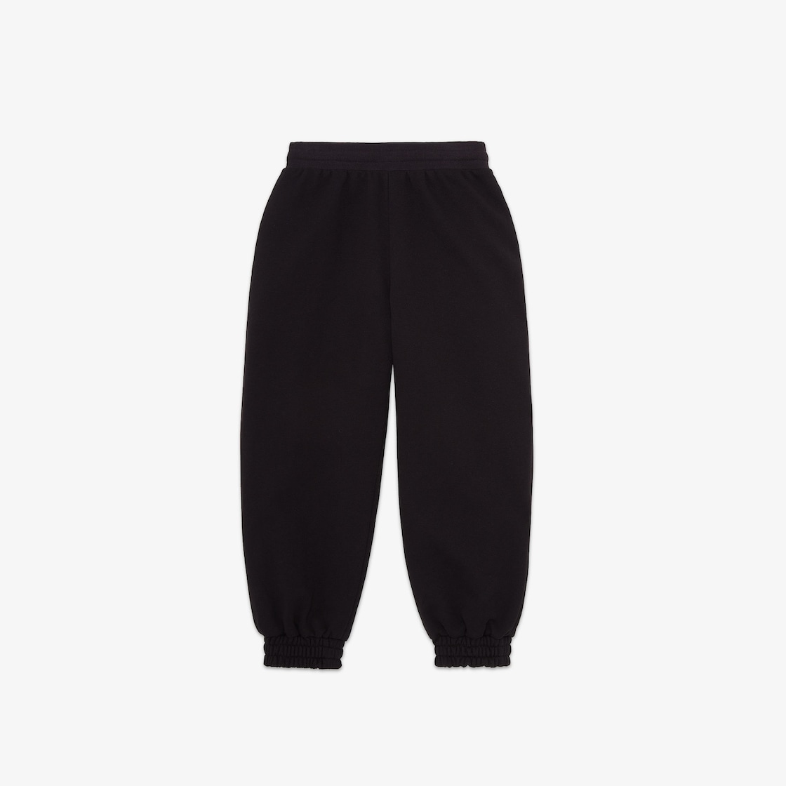 Reversible junior jogging trousers with drawstring at the waist. One side in black jersey with Fendi embroidery, and the other in nylon with all-over tobacco FF logo.
