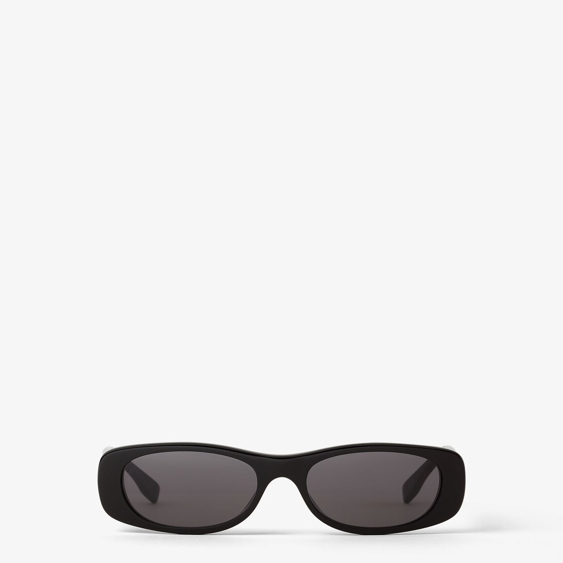 Low oval-shaped FF Squared glasses in black acetate. Temples with metal FF logo in a palladium finish. Black lenses.