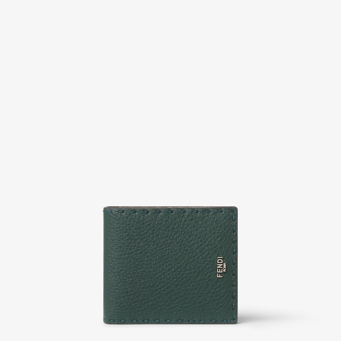 Bi-fold wallet, organised inside with eight card slots and two banknote compartments. Made of dark green Cuoio Romano leather, finished with 134 hand-sewn, matching macro topstitches, an emblem of the iconic Selleria workmanship handed down through generations of Fendi artisans since 1925. Grey Cuoio Romano leather lining. Palladium-finish metalware.