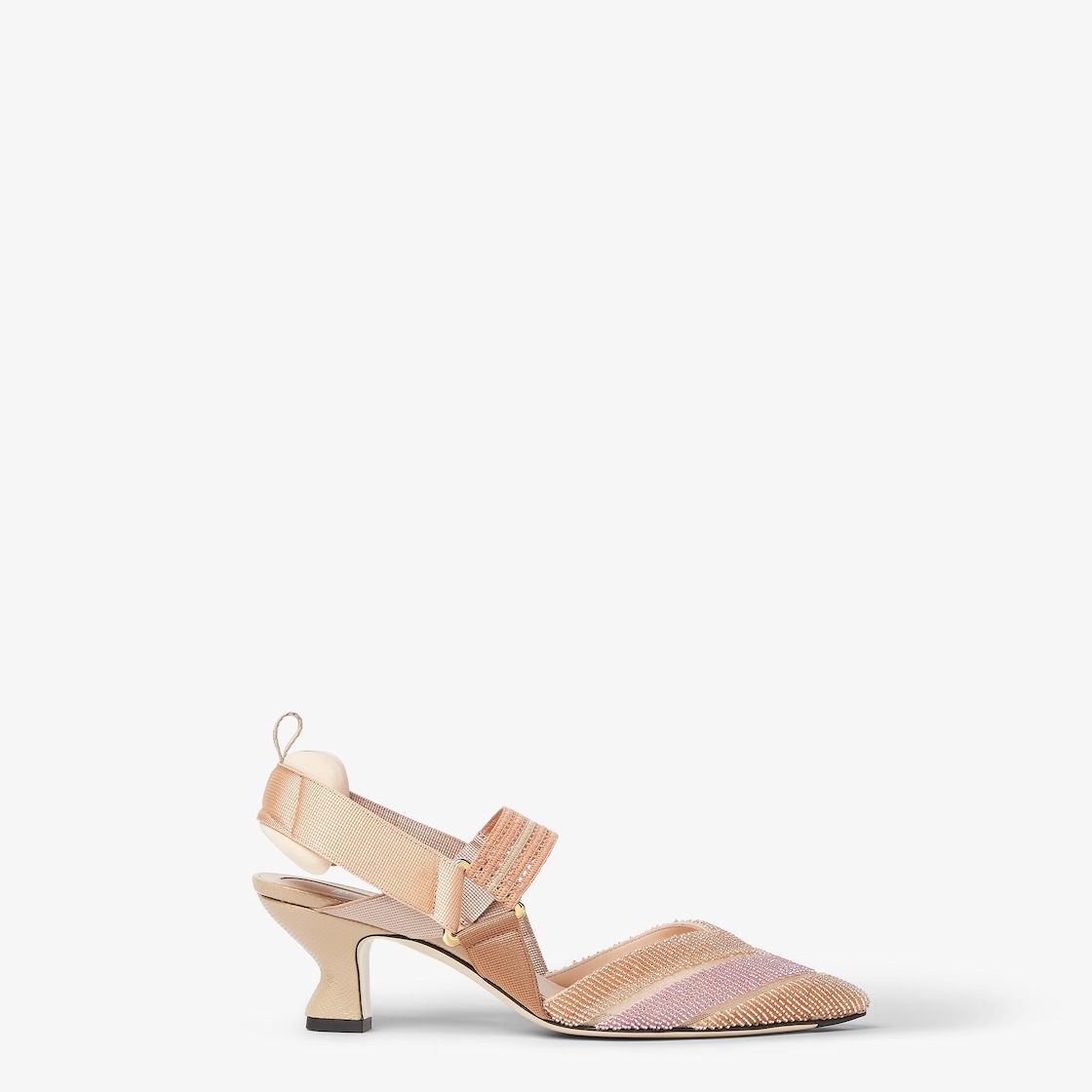 Peach pink mesh and beaded medium-heeled slingbacks