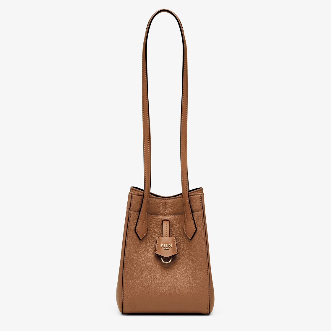 Mini Origami bag made of brown full-grain leather. The style recalls the dual nature and creativity of Fendi with an innovative design that can be transformed: the ingenious closure with eight magnets means the bag can be folded, origami-style, transforming it from a bucket bag – when the magnets come together in the middle with a magic clasp – into a shopper by gently pulling the short shoulder straps on each side.