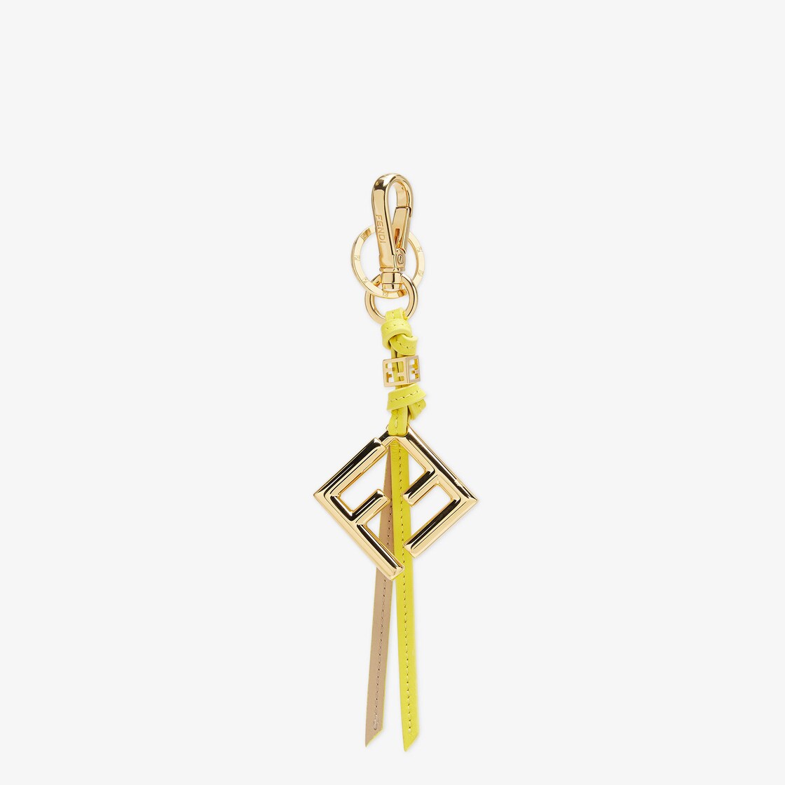 Pendant charm with diagonal FF to team with a bag and use as a key ring. Ring and logo clip. Made of beige and yellow leather. Gold-finish metalware.