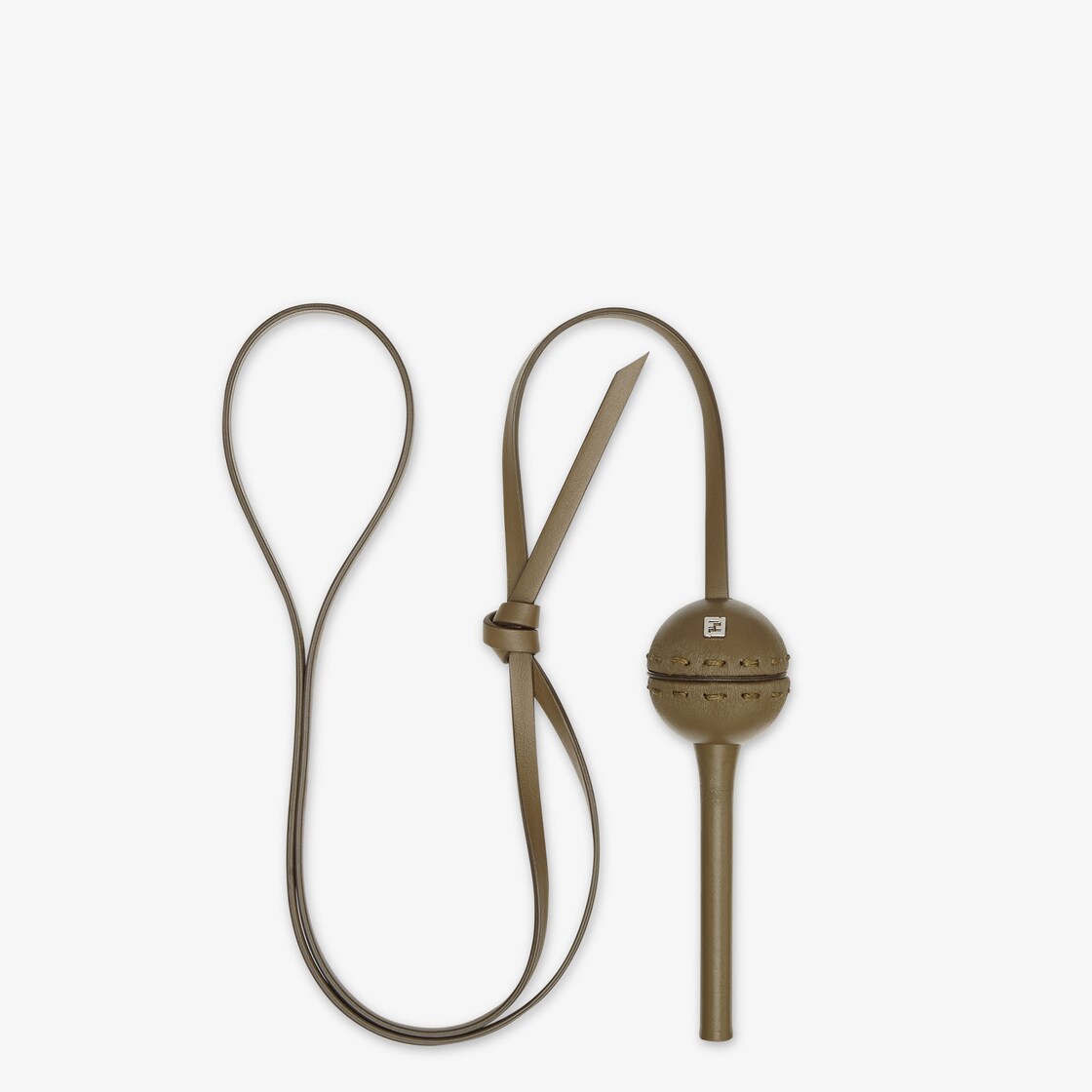 FENDI x Chupa Chups® lollipop holder necklace. The innovative and amusing design was created to enclose the exclusive Chupa Chups® x FENDI lollipop. Made of soft, green leather with details that recall the iconic Selleria technique and embellished with a metal FF logo. Magnetic fastening. The adjustable, knotted strap allows you to attach the charm to any accessory, to customise every outfit with a special touch.