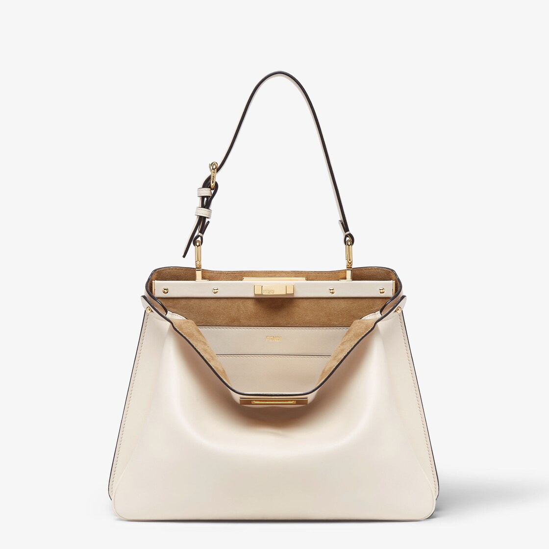 經典小型款式Peekaboo Soft包,FENDI工藝技術與創意揮灑的象徵。雋永經典,Peekaboo於2009年問世。包款的風格正如命名靈感源自兒童遊戲peek-a-boo(躲貓貓,我看見你了)一般,以俏皮的方式呈現美麗的外觀,並隱秘地呈現內層蘊含的奧妙魅力。