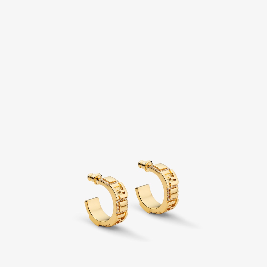 小號圈圈耳釘,飾有壓花FF圖案。金色飾面金屬製成。飾以水晶邊框。