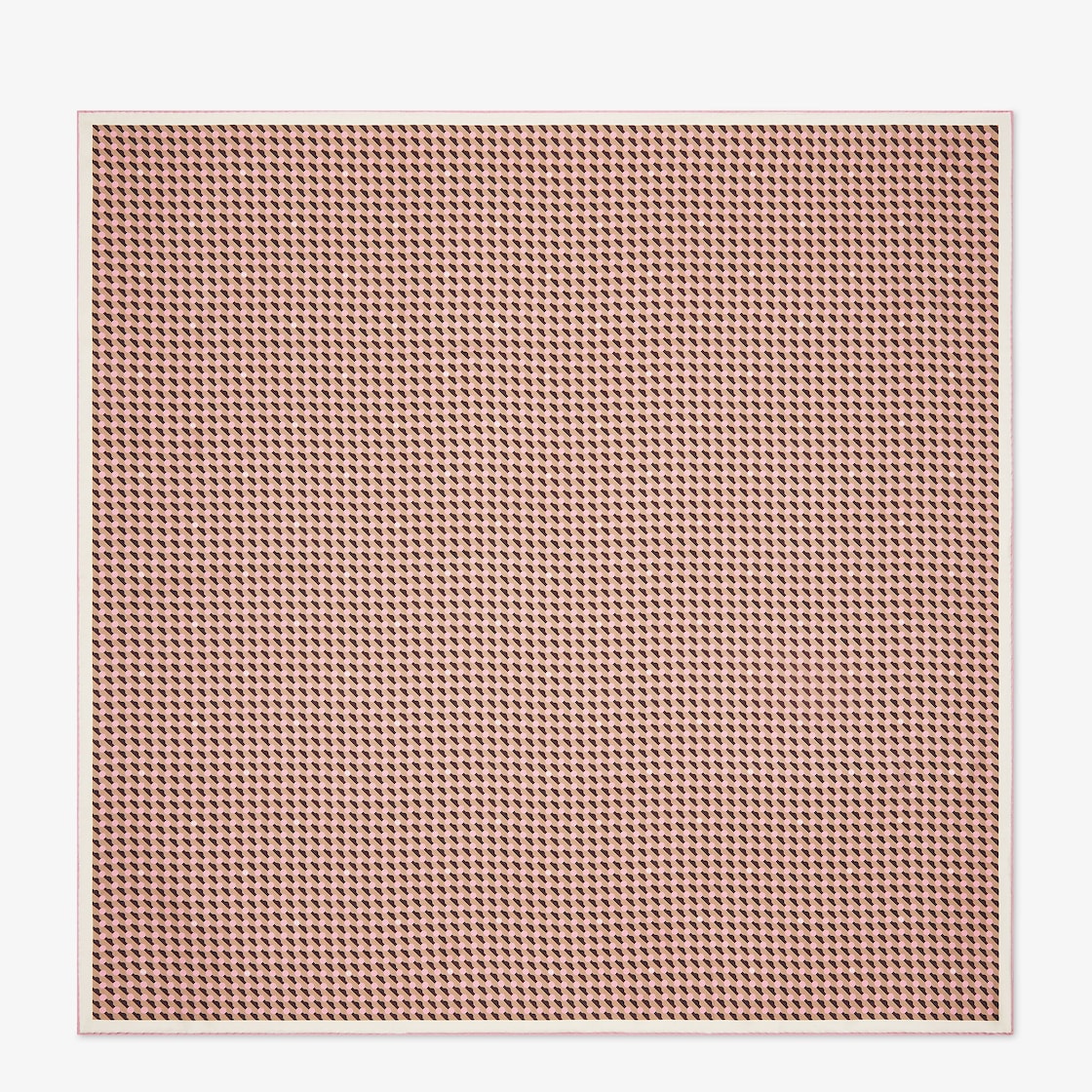 方型圍巾由粉紅色真絲製成。綴有FENDI Dots圖案,以微型圓點交織斜紋和FF標誌。以條紋色塊飾邊,讓風格更為出色。手工飾邊。