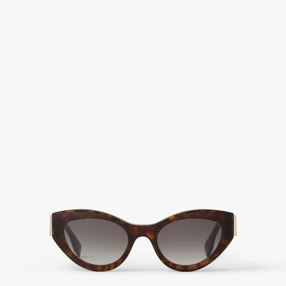 Havana醋酸纖維FENDI First貓眼造型太陽眼鏡。鏡臂飾有特大斜紋F圖案,採用金色金屬製成。棕色漸層鏡片。