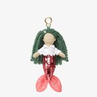 Maya包款吊飾以麂皮製成,搭配綠色翻羊毛和皮革FF髮夾,總共耗時20小時製作。白色布質襯衫在腰部打結,飾有刺繡FF標誌和以粉紅色亮片刺繡而成的雪紡美人魚尾。皮革掛帶和特製FENDI標誌彈簧鉤。金色飾面金屬製品。適合搭配同系列的包款,打造獨特外型。