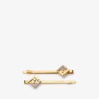一組兩件式髮夾,飾有鏤空FF標誌。以金色飾面金屬製成,標誌上綴有白色水晶鑲嵌。