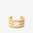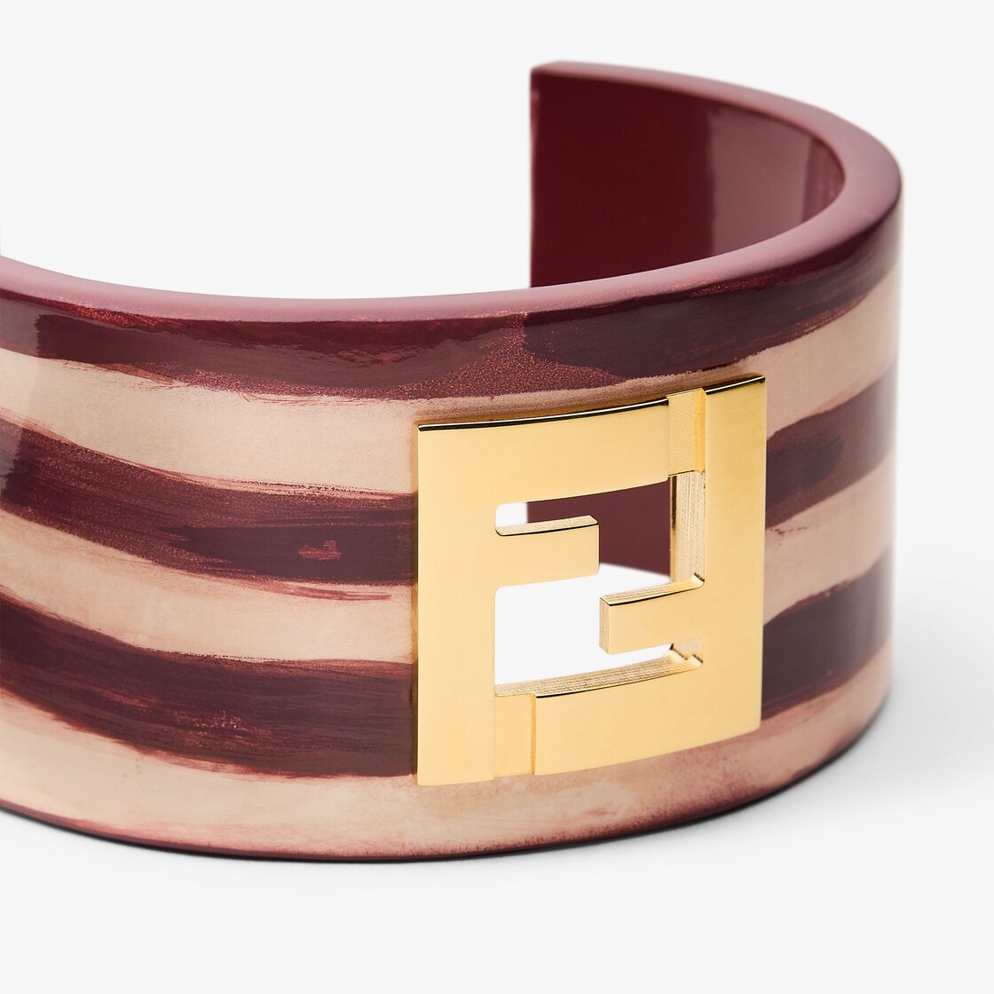 硬質手環綴有金色飾面金屬製成的鏤空FF標誌。樹脂製成,飾有粉紅色與深櫻桃紅色的經典Pequin圖案。