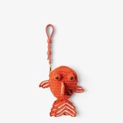 魚造型零錢包,飾有立體效果的眼睛和魚鰭。以紅色棉鉤針編織製成,飾有對比色紗線刺繡FF字樣。拉鏈開合,綴以金屬色澤FF元素和同色系皮革拉片。金色飾面金屬製品。
