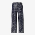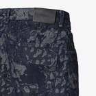 五口袋直筒長褲。中型款式、高腰設計。拉鏈和鈕扣開合設計。下擺寬度:24公分。藍色丹寧布料製成,飾有滿版Falena Drops提花圖案。綴有品牌標誌鉚釘、相稱顏色縫線,以及背面的壓花FENDI Roma字樣皮革接片。