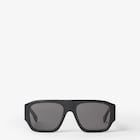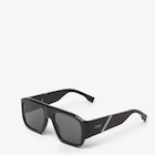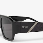 方形黑色醋酸纖維FENDI Diagonal眼鏡。寬鏡臂搭配對角金屬嵌飾和FF圖案。迷霧灰色鏡片。