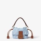 以有機棉質FF丹寧製成,呈現淺藍色水洗效果,飾有嵌以馬鞍棕色皮革的FF鉤扣。