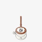 Travel address holder in the shape of a cappuccino with removable tag. Made of white leather with sellier brown leather edge and details. Finished with black leather FF logo. Sellier brown leather strap to attach it to bags and suitcases. Brown FF canvas back.