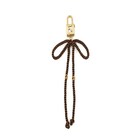 Charm with padlock-shaped clip and FF detail. Made of gold-finish metal. Long strap with bow motif in brown Chevron chenille. Embellished with two small geometric beads with FF logo. Perfect for customizing the look of all the collection bags.