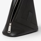 Large Fendi Cono, one-shoulder backpack, made of black full-grain leather with embossed macro F motif. Asymmetric zip fastening.