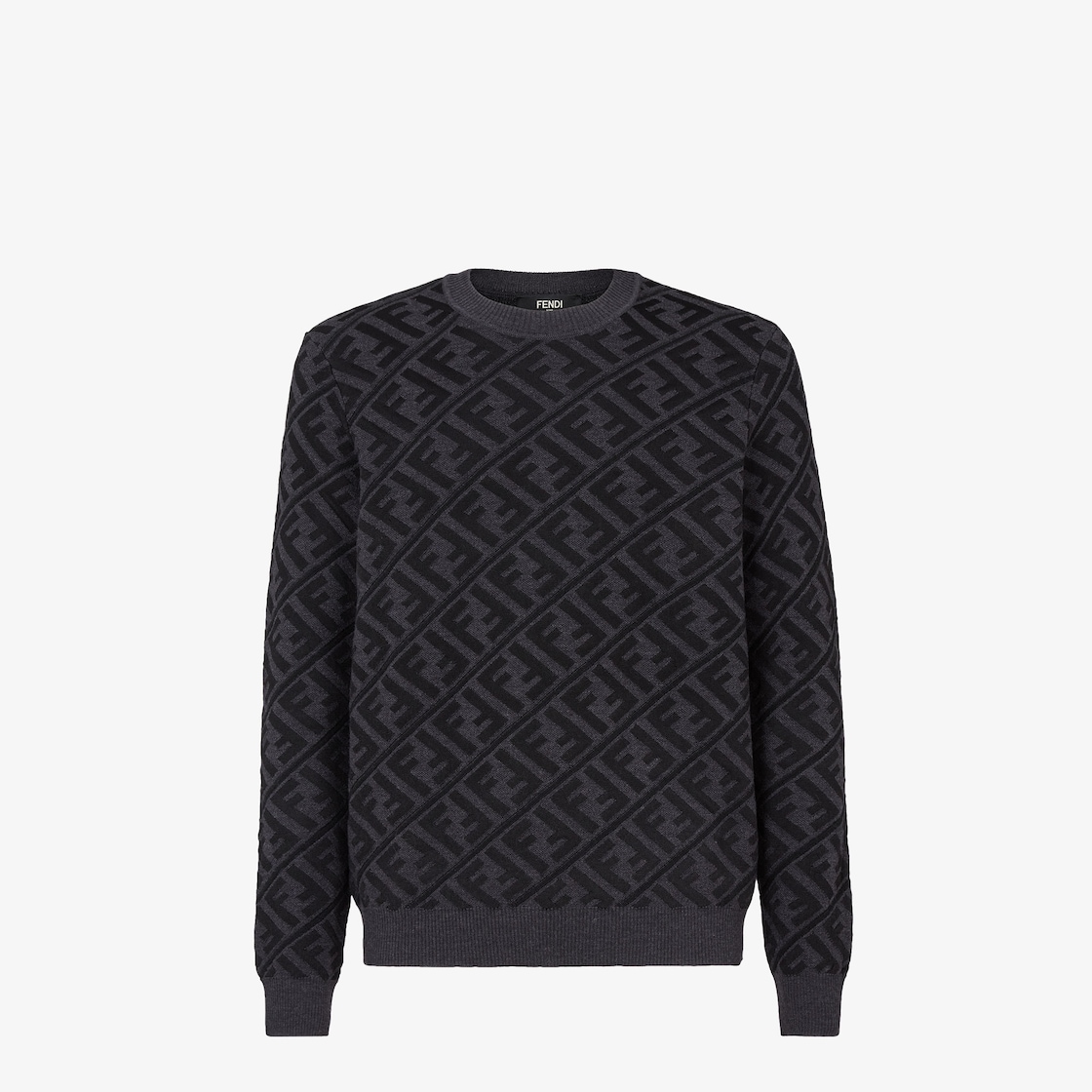 Long-sleeved, regular-fit crew-neck jumper. Ribbed edges. Made of wool and viscose with a black and gray all-over diagonal jacquard FF motif.