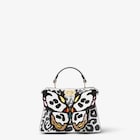 Made of calfskin printed with a black and white abstract motif inspired by butterflies. An applied maxi butterfly inlaid with multicolor leather, suede and satin adorns the front panel, as though it had delicately alighted on the bag.