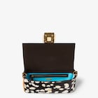 Entirely embroidered with sequins of different colors and sizes that create the multicolor Night Butterfly motif inspired by butterfly wings. Made of black printed calfskin with the Peppered Falena motif in orange and decorated with an FF clasp.