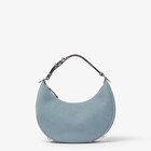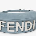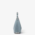 Made of mercury blue Cuoio Romano leather with a suede finish, calfskin with a characteristic natural grain produced with a metal-free tanning process. Embellished with FENDI lettering in vintage palladium finish metal on the base, visible when the bag is worn under the arm.