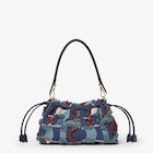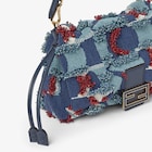 Embroidered by hand all-over with light blue, blue, white and red beads that create a three-dimensional abstract motif. Embellished with an FF clasp with dark blue leather insert.