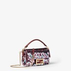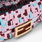 Small-size iconic Baguette® bag, with refined all-over multicolor sequin embroidery in pink, light blue and burgundy for a 3D effect. Decorated with an FF clasp.