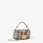 Iconic small-sized Baguette® bag, made from natural-colored canvas with the iconic FF motif embroidered in relief in multicolored yarn and decorated with an FF clasp. Embellished with beige leather details.