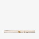 Narrow belt with loop and diagonal FF stud buckle. Made of dove gray leather. Gold-finish metalware.