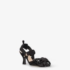 Black satin high-heeled slingbacks