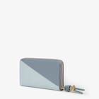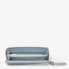 Large FF Diamonds wallet with zipper along three sides. Featuring an interior with two gusseted compartments, eight card slots and central zipped coin pocket. Made of mercury blue full-grain leather and light blue smooth leather. Tubular leather zipper puller with knot and FF Diamonds element. Metalware with gold finish.